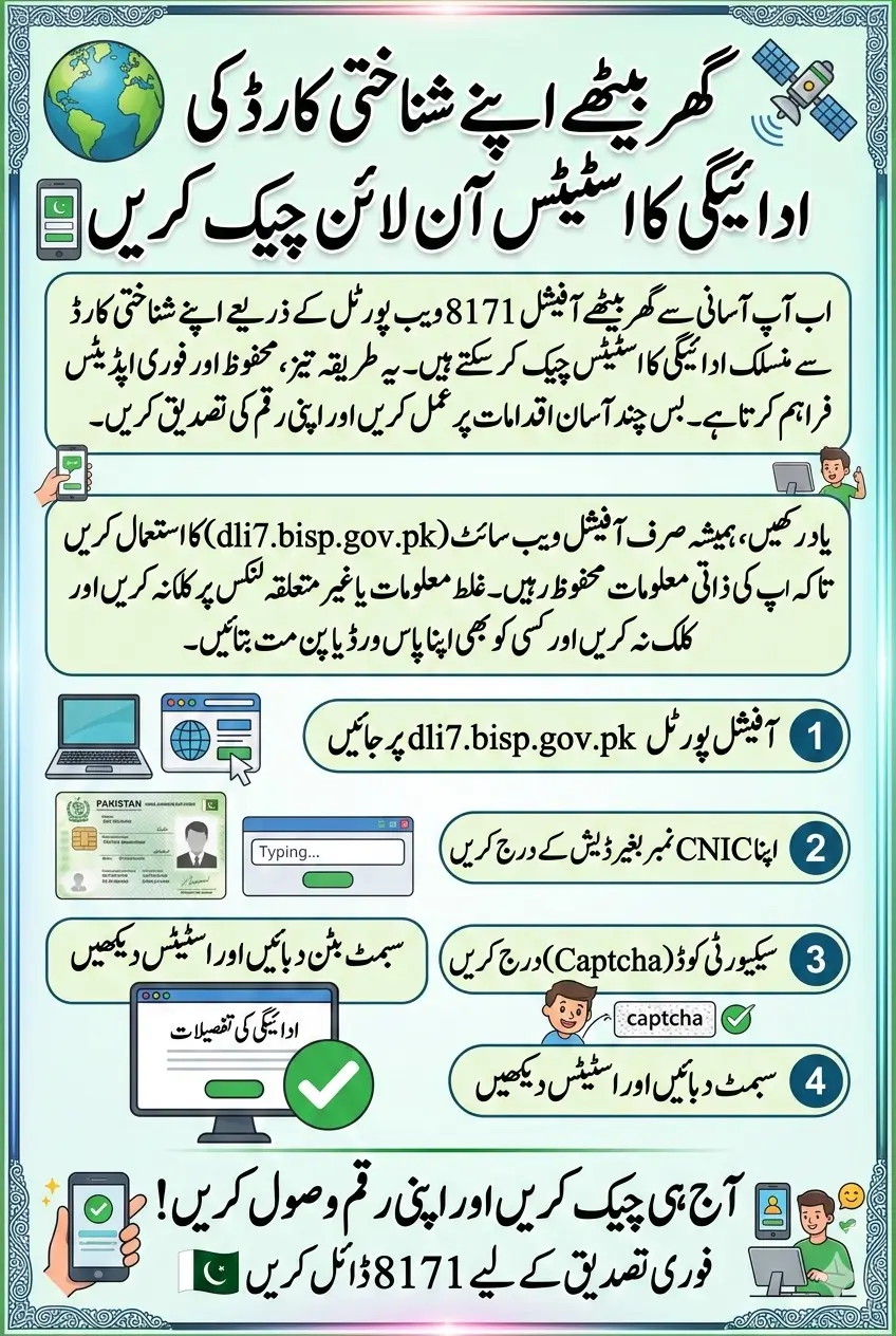 Easily verify your CNIC-linked payment status online using the official 8171 portal. Quick, secure, and real-time updates from home.