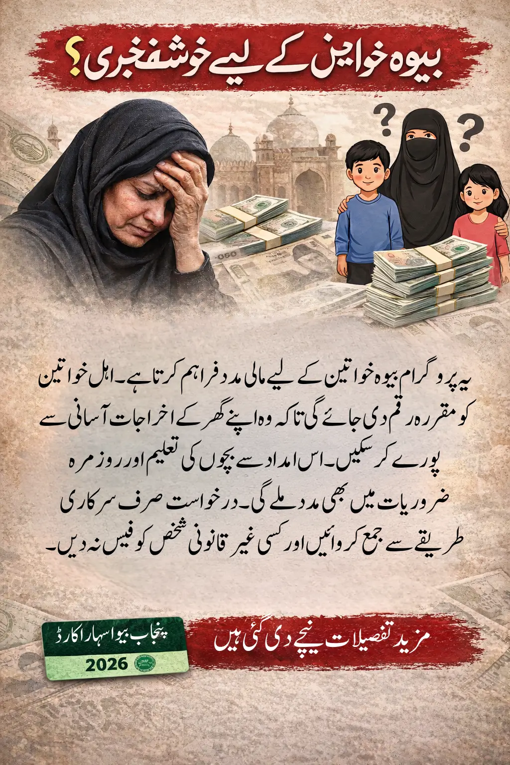 Punjab Bewa Sahara Card 2026 is a financial support program for widowed women. The government designed the Bewa Sahara Card scheme to provide one time financial assistance. The amount depends on the number of dependent children.